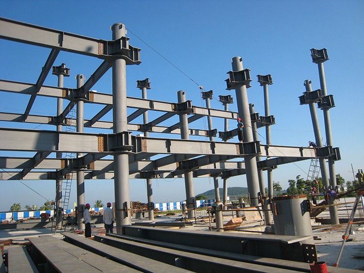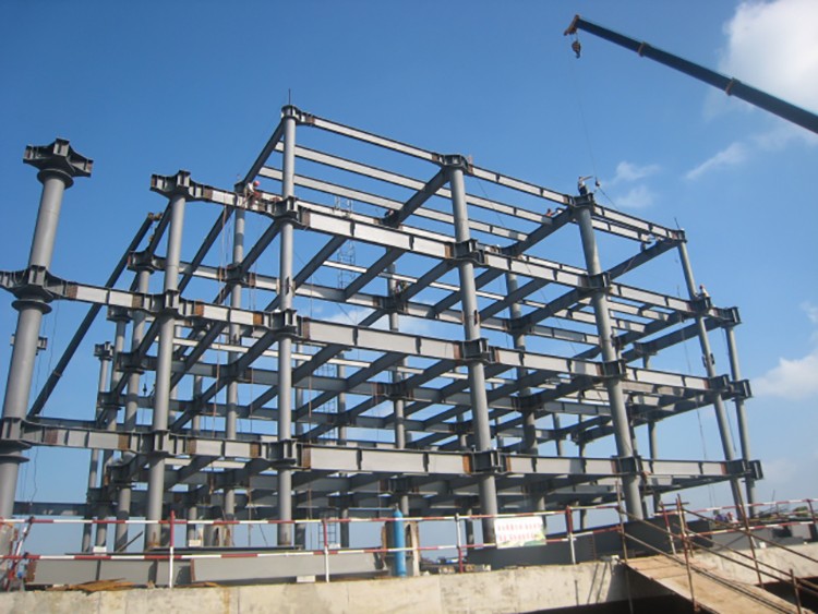 多层框架及异型钢结构屋面,钢框架共四层,用钢量约2500吨