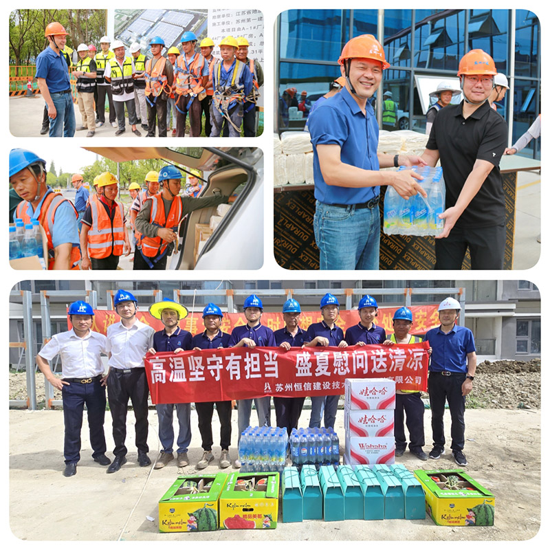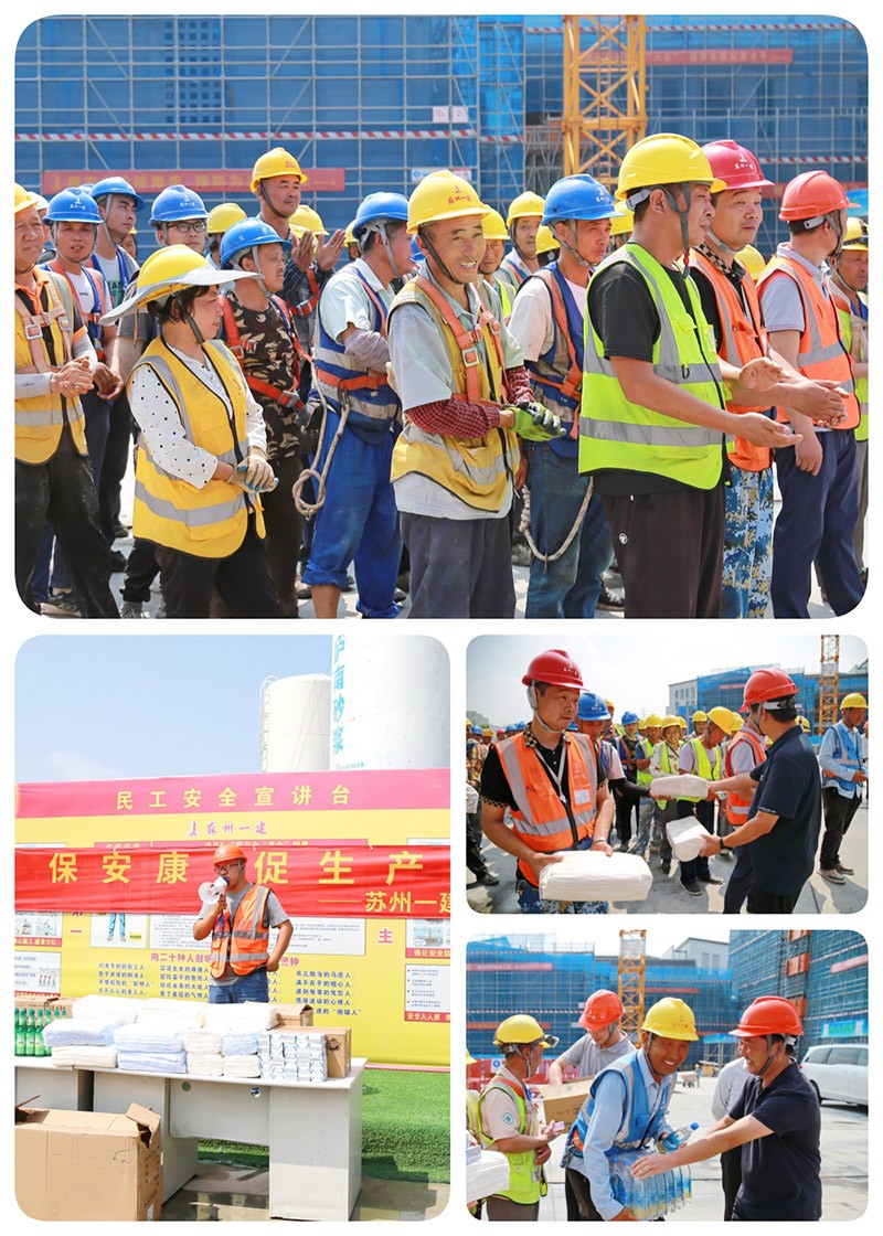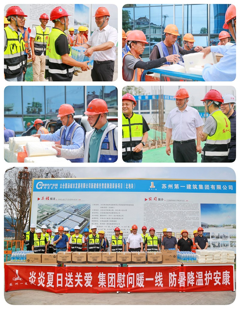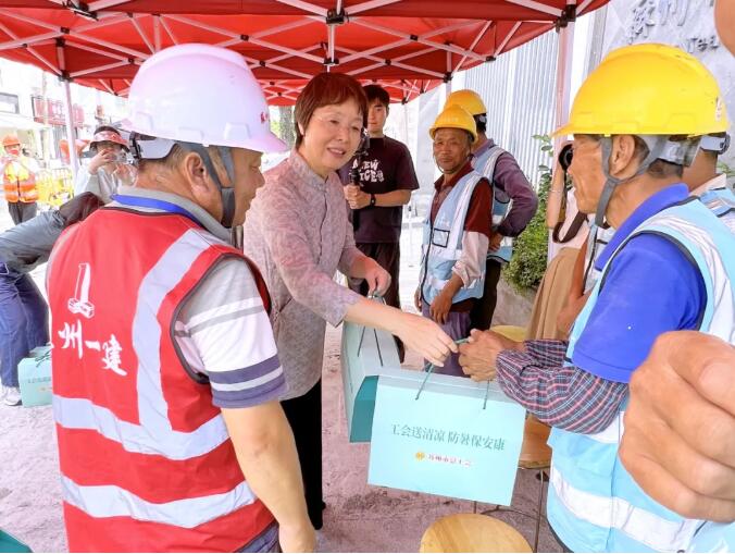根据苏州市总工会部署,为切实做好高温季节安全生产和防暑降温工作,确保施工一线人员生命健康安全,集团公司党委、工会全面启动“夏送清凉”高温慰问专项行动,为奋战在烈日下的一建职工送去防暑物资和关怀慰问,以实际行动践行企业责任,筑牢安全生产防线。