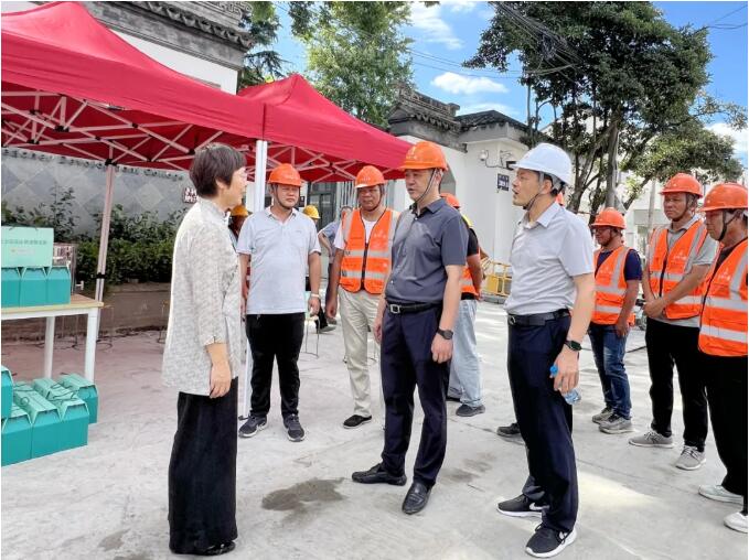 7月上旬,苏州市总工会主席陈嵘,苏州市住建局副局长、党组成员史纲分别带队深入本市重点项目“学士街改造工程”施工现场,亲切慰问高温下坚守岗位的一线职工,并送上清凉饮品、防暑药品等慰问物资,慰问中,领导们详细询问了工人作息安排,叮嘱项目负责人务必落实高温天气劳动保护措施,科学安排作业时间,确保施工安全。