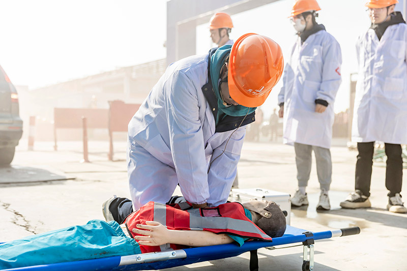 医护组在抢险组协助下将昏迷人员转移至安全部位,进行心肺复苏急救,并立即与120联系,随后送往就近医院进一步救治。