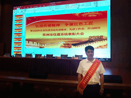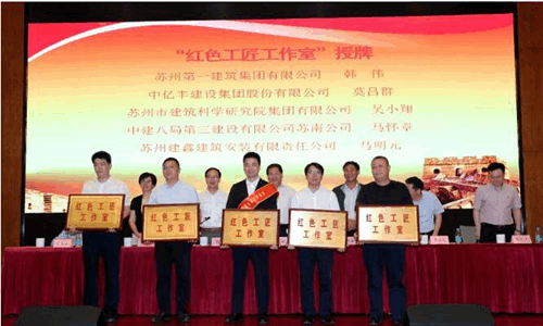 5月28日下午,苏州市住建系统“弘扬劳模精神,争做红色工匠”暨苏州市荣获全国全省住建系统先进集体、先进工作者和劳动模范表彰大会在苏州召开。省住建厅副巡视员兼机关党委书记杨洪海、市住建局党委书记虞伟出席会议。我集团公司韩伟同志被授予江苏省住房城乡建设系统劳动模范称号。集团公司被授牌“红色工匠”工作室。