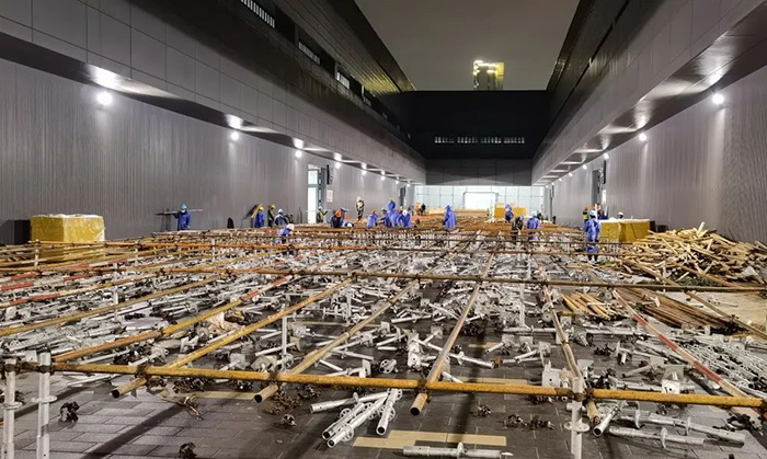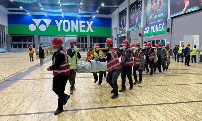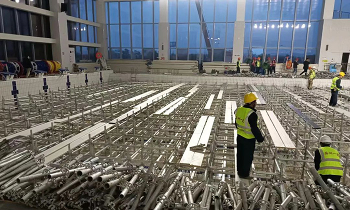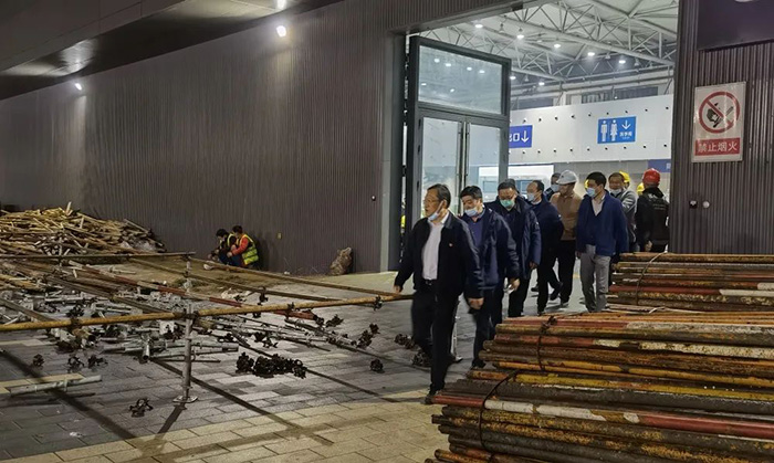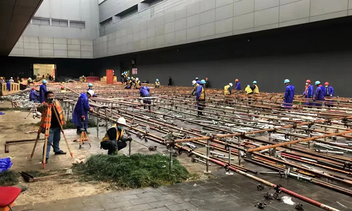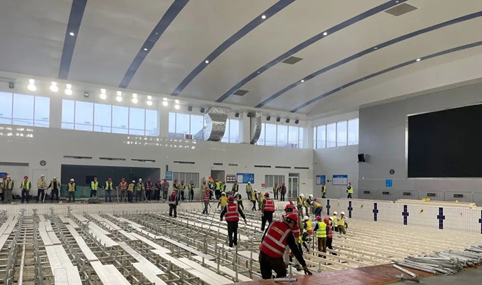2022年3月24日17:00第一时间接到苏州城投公司指令,昆山花桥博览中心2000张床位和金阊新城文体中心800张床位的建设任务,要求48小时完成。集团公司火速成立援建工作组,集团韩伟、刘震、马超、方韧等领导亲临现场指挥,分组负责资源调配、设计对接、施工组织、后勤保障,同时迅速开展方案制定、人员调配、材料及设备订购等工作。集团所属各分(子)公司积极响应、主动请缨,连夜组织精兵强将奔赴现场,各项目部纷纷伸出援手,配合物资调拨,提供有力保障。
