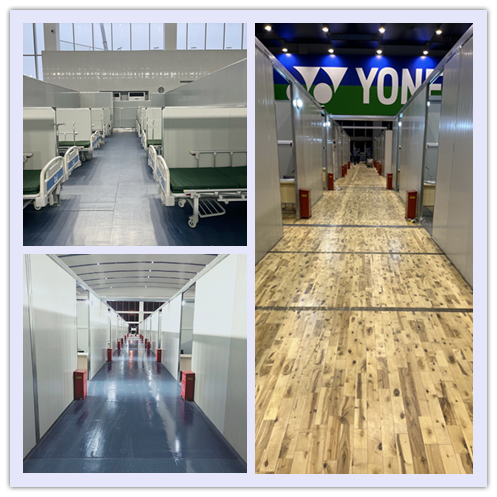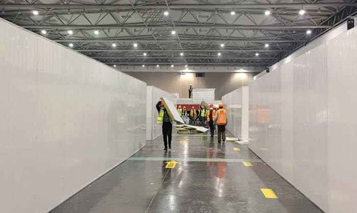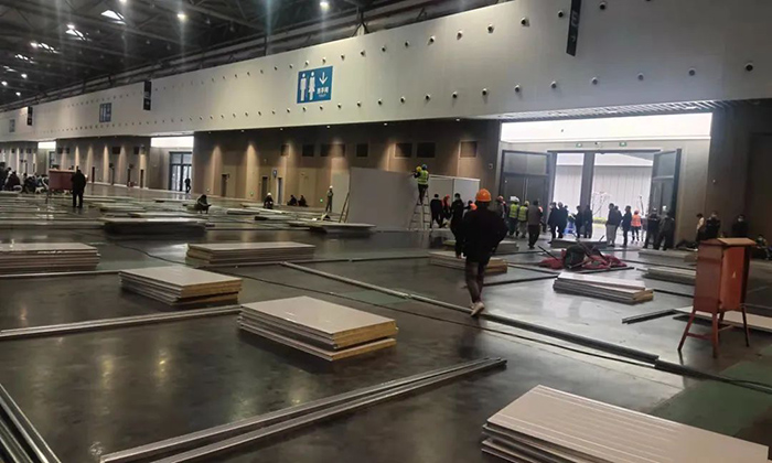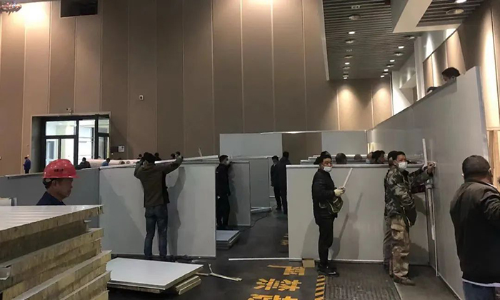 48小时不间断施工,共计完成近5000平方米岩棉彩板隔断及相应病床的拼装;500多平米医护清洁区位的功能设施安装、装饰改建及所有室外配套净化服务设施的新建;完成空调系统、新风机组系统、移动卫生间、污水处理装置、照明系统、给排水系统等机电安装工作,获得了验收专家组高度评价。