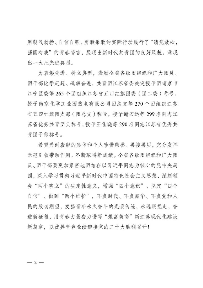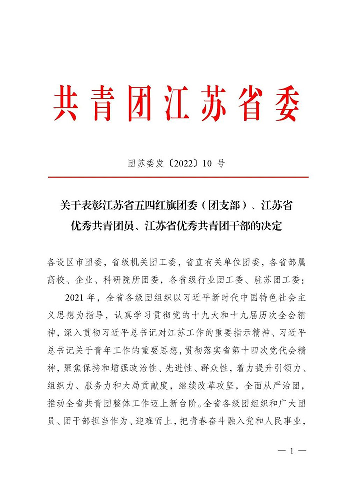 荣获共青团江苏省委