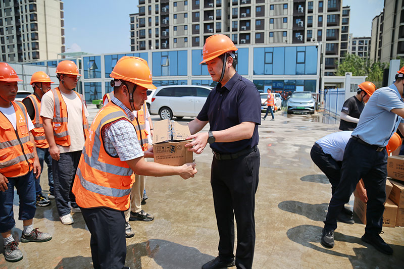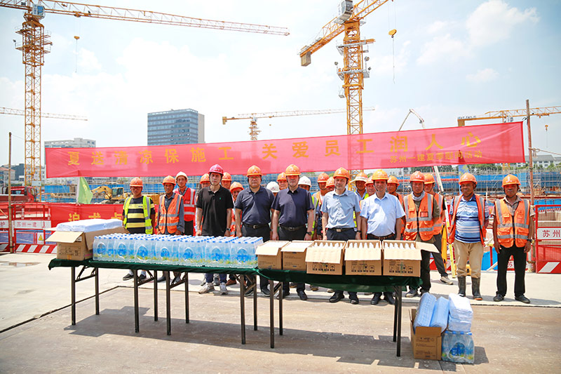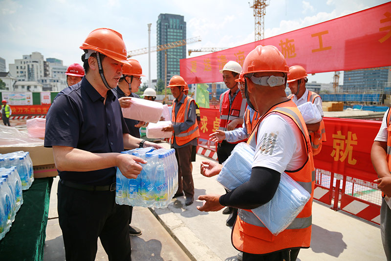 入伏首日,集团工会“关爱职工、夏送清凉”高温慰问活动正式启动,工会主席严才明特邀董事长、党委书记韩伟、副总经理马超带队,分组前往公司承建的轨交、教育、养老、住宅、仓储物流等重点在建项目部,将集团公司的关爱和慰问送到一线职工的手中。