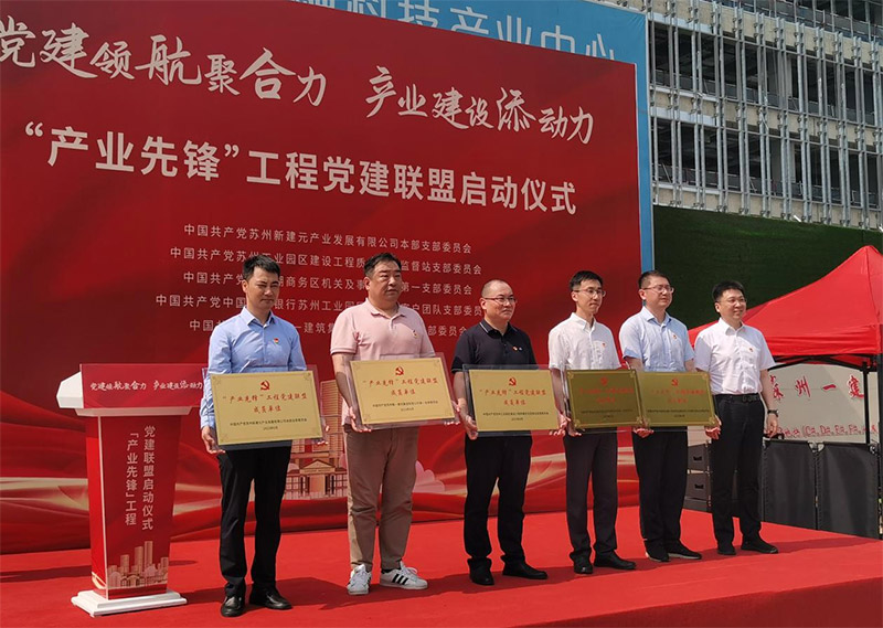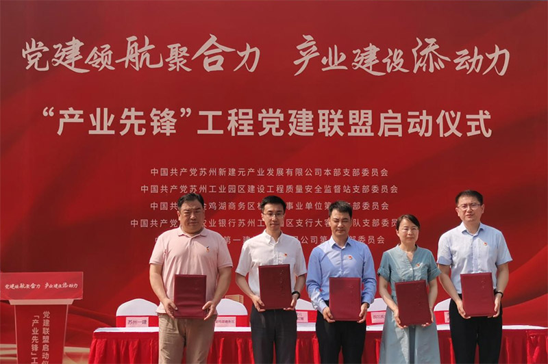 6月13日上午,由苏州新建元产业党委牵头,联合园区质安站、金鸡湖商务区、农业银行园区支行、必赢242net官网共5家单位组成的“产业先锋”工程党建联盟启动仪式在阳澄数谷新建元项目部成功举办。